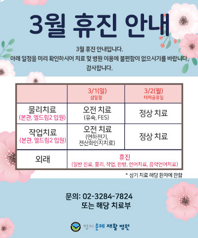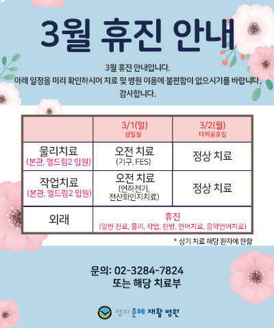 02.3284.7777수술 후 빠른 재활치료가 후유증을 최소화 합니다.