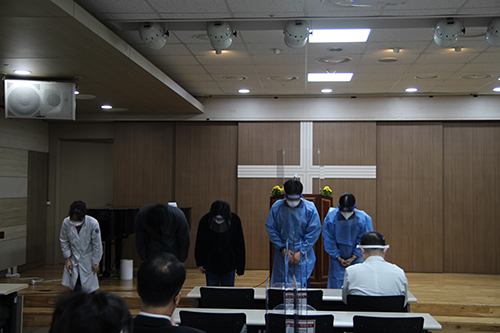 지하 2층 새생명교회에서 월례회의를 진행했습니다.