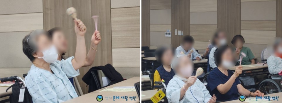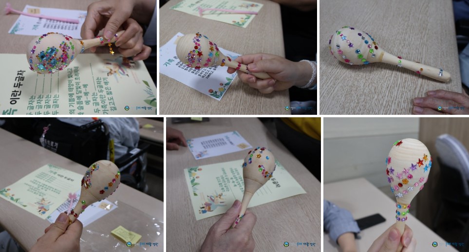 처음에는 어찌해야 할지 어색해 하셨지만, 역시 금손이신 우리 환자분들 금방 예쁜 마라카스를 만들어주셨어요.