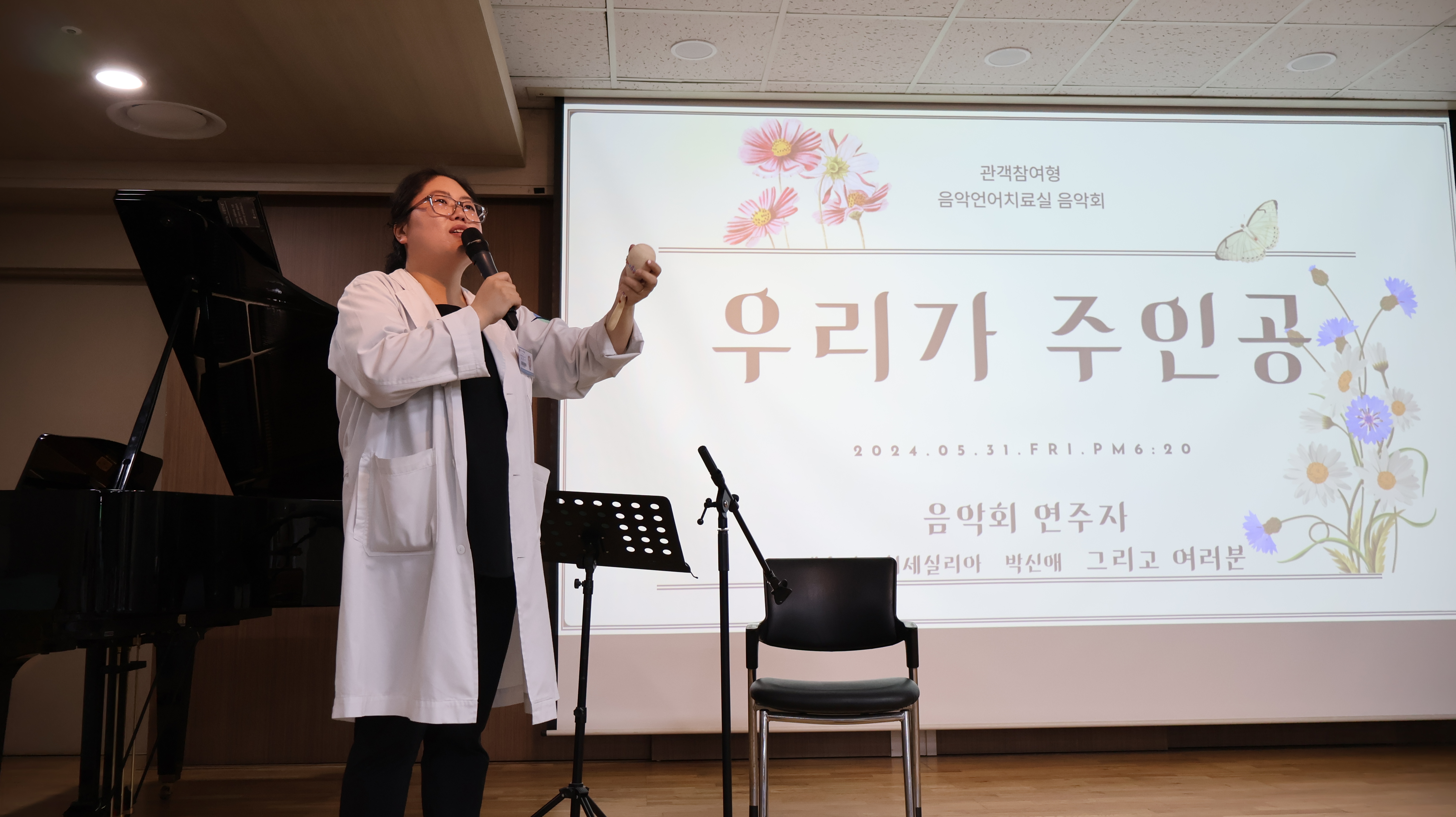 사회사업실과 음악언어치료실에서 시행한 '우리가 주인공'이라는 주제의 음악회였는데요.