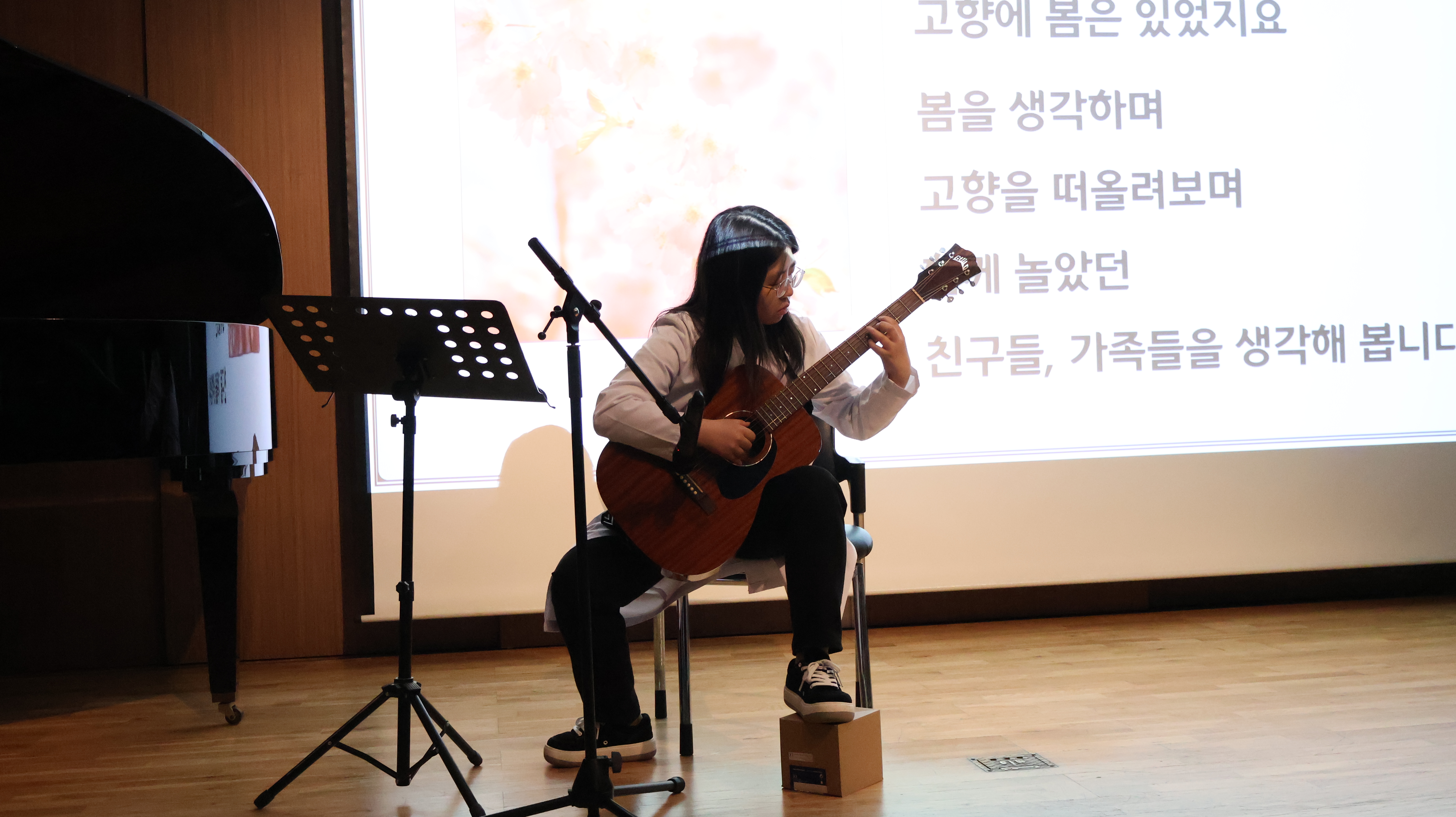 음악회에 대한 설명이 끝나고 본격적인 음악회가 시작되었는데요. 최새실리아 선생님의 기타연주가 문을 열었습니다.