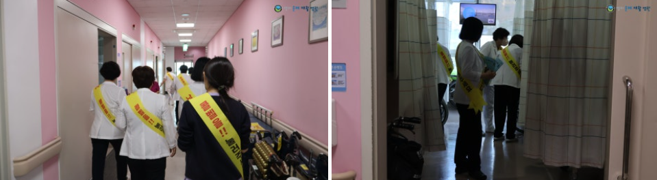 그래서 간호부에서 낙상 예방을 통해 안전한 병원 생활을 하실 수 있는 운동방법 안내도 함께 진행하였습니다.