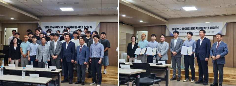 지난 8월 월26일 본관 제2남천홀에서는 영등포구 마오르 물리치료봉사단 창설식이 진행되었습니다.