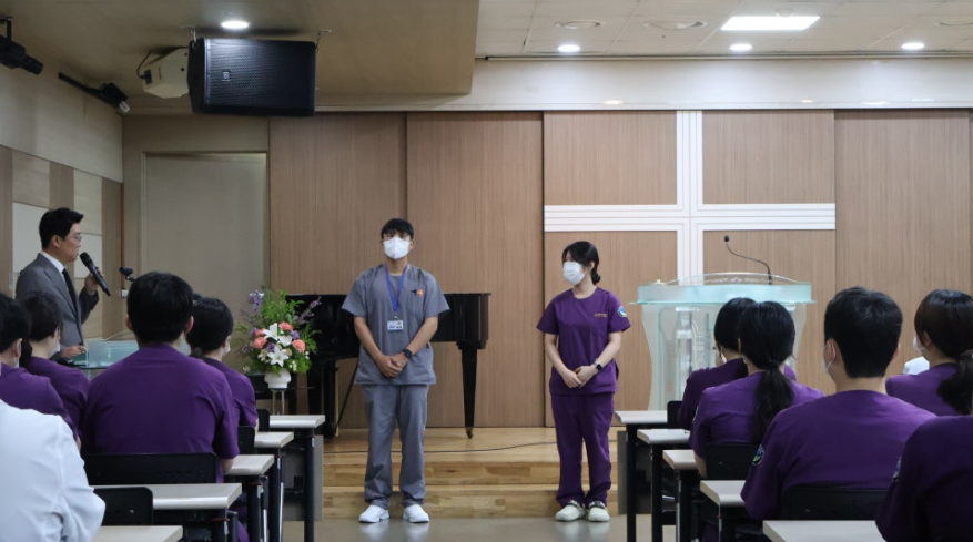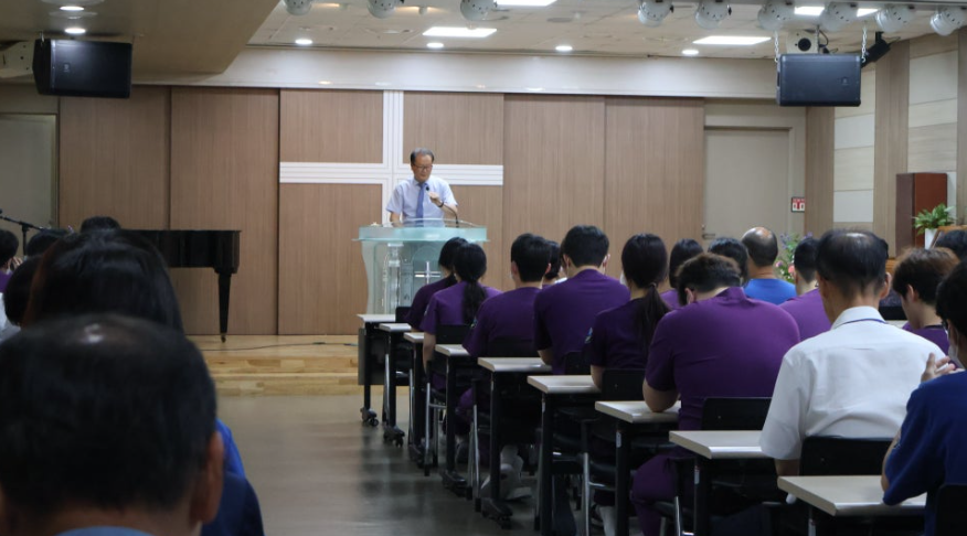 김승태 목사님의 기도를 시작으로 간호부와 작업치료부에 새롭게 입사한 직원 소개가 있었습니다.
