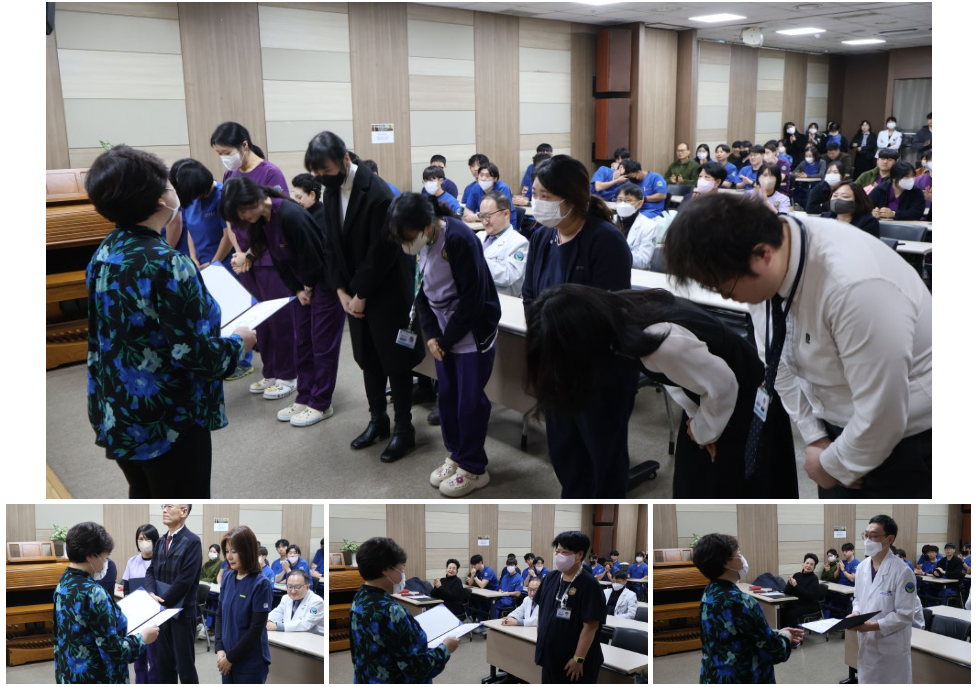 또한 예배 참여 우수 부서(5병동) 포상과 함께 승진자 임명장 수여식이 진행되었으며, 임직원 모두가 축하와 응원의 마음을 나눴습니다.
