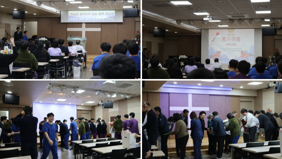 신년하례식은춘혜의 노래 합창과 새해 다짐, 그리고 전 직원이 서로 악수하며 인사를 나누는 것으로 따뜻하게 마무리되었습니다.
