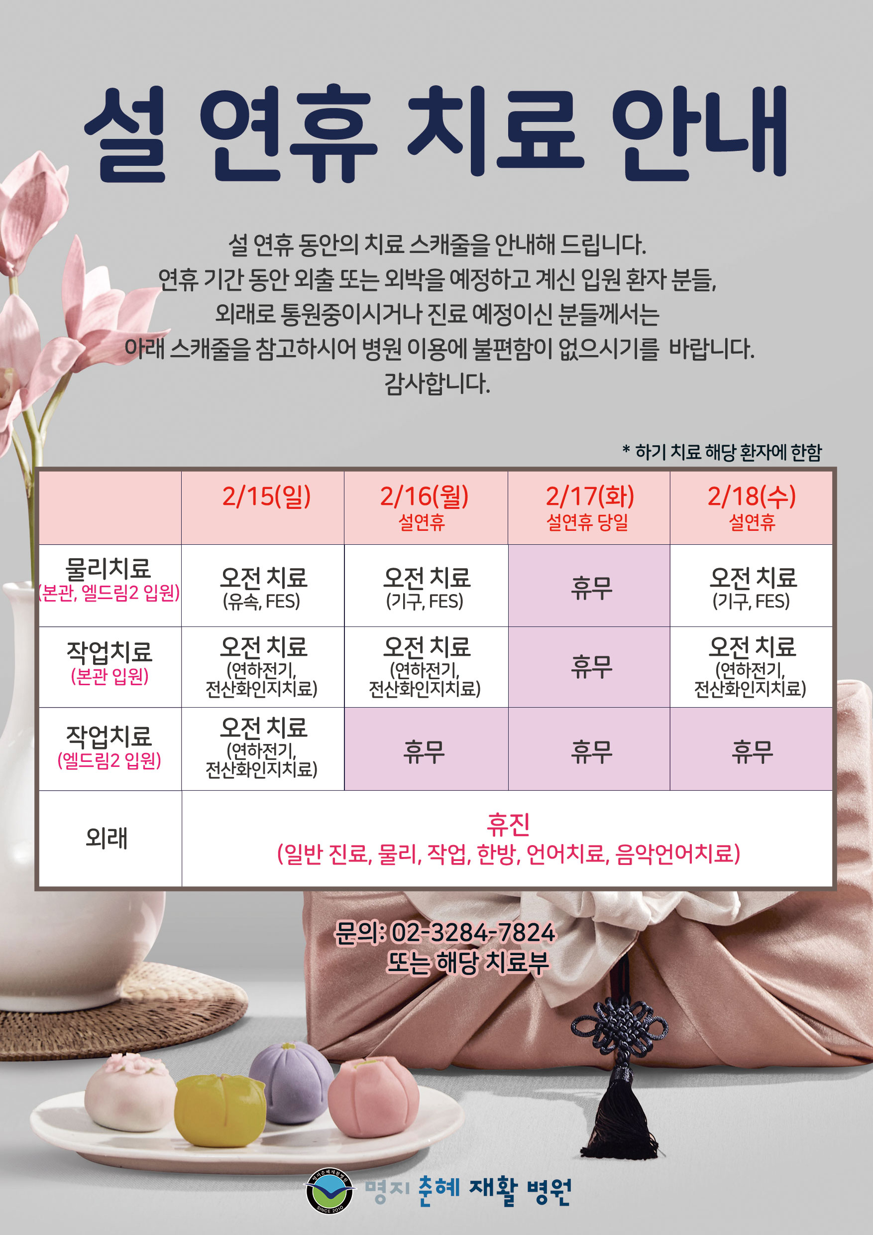 2/15~18 (4일간) 설연휴 기간 동안의 치료 안내입니다.