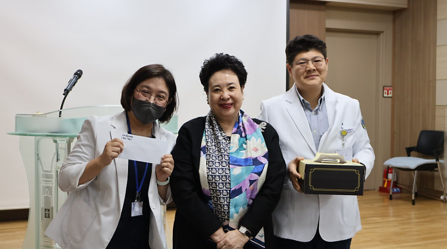 이어서 명예이사장님의 친절직원 및 예배 참여 우수 부서에 대한 포상이 있었습니다.